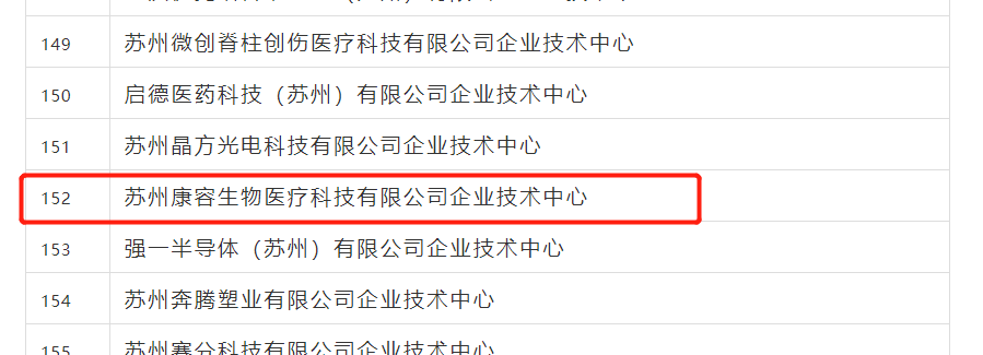 日前,苏州市人民政府官网,公布了苏州市第二十五批市级企业技术中心名单,涉及了196家企业技术中心,苏州康容生物医疗科技有限公司名列其中。