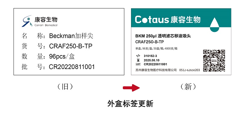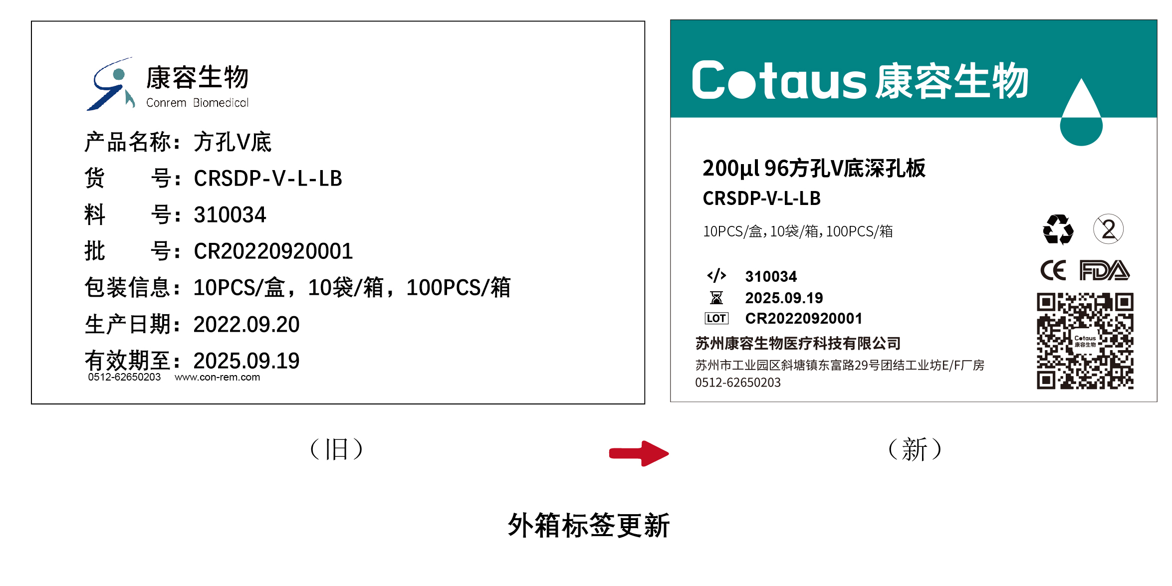感谢您长期以来对康容生物的支持与信赖!为了更好地服务各位客户,即日起公司将对产品外包装标签进行优化升级。不仅logo焕新,产品信息也更完整:客户可以第一时间获取容量、性能、外观等信息。举例说明:
