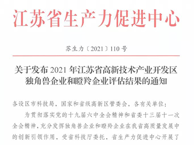 日前,江苏省生产力促进中心发布了2021年江苏省高新区独角兽企业和瞪羚企业评估结果,苏州康容生物医疗科技有限公司凭借创新的核心技术及优质的产品和服务能力获得“瞪羚企业”称号。